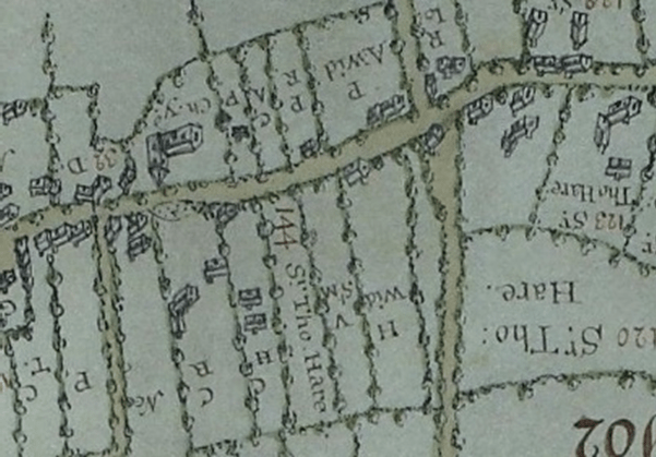 There are no dwellings shown on the 1636 map, the 1772 enclosure map or the 1840 Tithe map (although sheds or barns are shown on the tithe map). For more detail see Maps and tithe apportionment section. 73 on the Enclosure map and 6 on the Tithe map