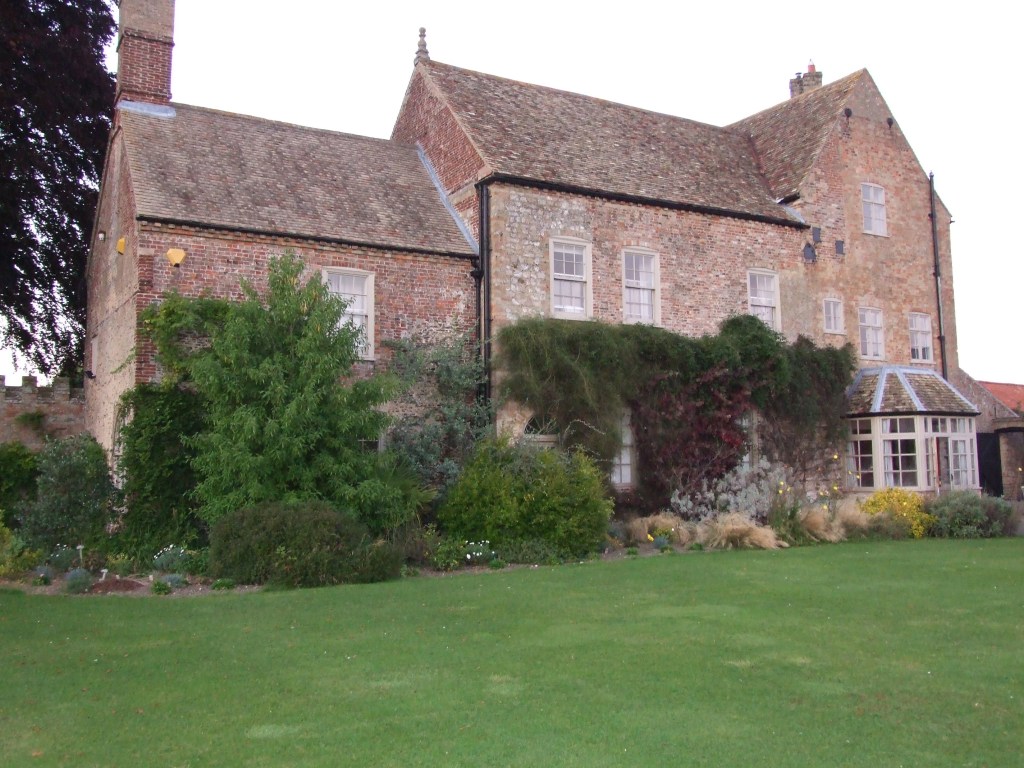 Manor House. c.1500, remodelled late C16 and C19. Brick, clunch and ashlar dressings. Roofs of plain tiles. North front of 2-3 storeys. A composition of 3 gables with polygonal brick tower at north-east corner. Tower c.1500 : arched door to ground floor which is lit by cinquefoiled arched lights. Upper floor with arched lights below square hood moulds on labels. Machicolated cinquefoil frieze below string course and stepped battlemented parapet. Facade with renewed hollow chamfered 3 and 4-light cross casements of rendered brick. Blocked 2-light casement in west cross gable. C19 battlemented entrance porch between cross gables with arched entrance beneath square hood. To left early C17 blocked doorway : semi-circular arch flanked by fluted Ionic pilasters supporting entablature with finials, all in strapwork tradition. East wall with large stepped internal chimneybreast culminating in pair of renewed diamond flues. South front of C16 construction now studded irregularly with C19 sash windows with glazing bars. 3 C18 casements to east cross wing. One bay western addition of early C19 with sash windows and gabled roof. Interior. Screen truss remains, arch braced to heavy wall studs in western range. Bridging beams with tongue shops. Timbered screens passage now blocked by staircase. Roof structure renewed : C19 King post roof over main range; east cross wing with C18 butt purlins and collars.