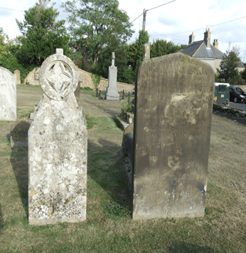 Martha was buried in the churchyard next to her father William Corston. The letters in hoc salus (I.H.S.) appear on the gravestone. (There is safety in this.) This is one of three interpretations of the letters IHS which often appear on Roman Catholic tombstones and monuments.