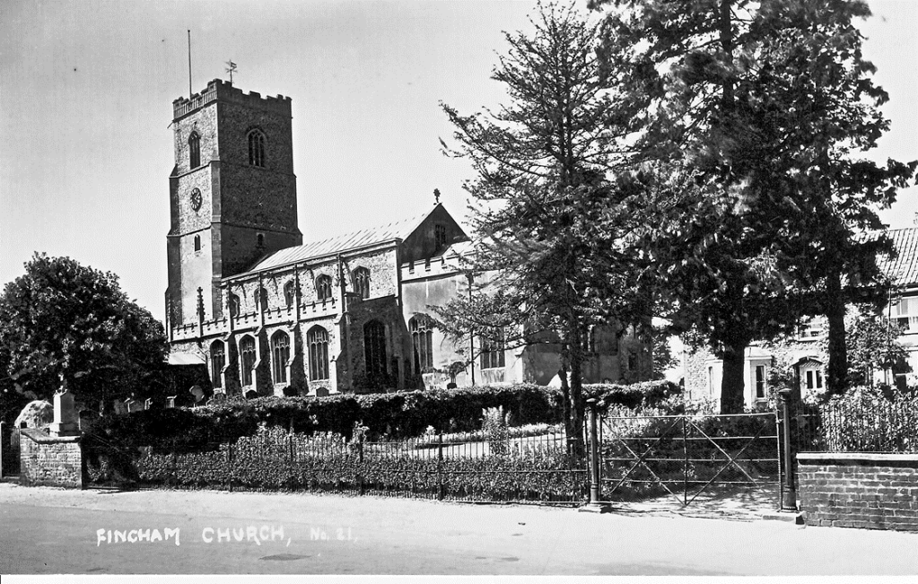 Many generations of villagers worshipped at one or the other for about 600 years. The Black Death, Reformation and Civil War came and went. There are references to the Fincham family having specific association with St. Martin’s. Adam De Fyncham, who was Attorney General to Edward 11 and Edward 111, was buried in St. Martin’s Church in 1338. Simon Fyncham made bequests in the 15th century to the rebuilding of the church in the Perpendicular style. Nicholas Fyncham restored the Vestry and was buried in it in 1503.(Blyth)