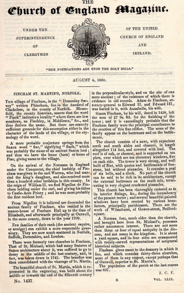 ‘(We are) writing to set out the findings of the group of historians from UEA who have recently carried out research on the building of St Martin’s Church Fincham.