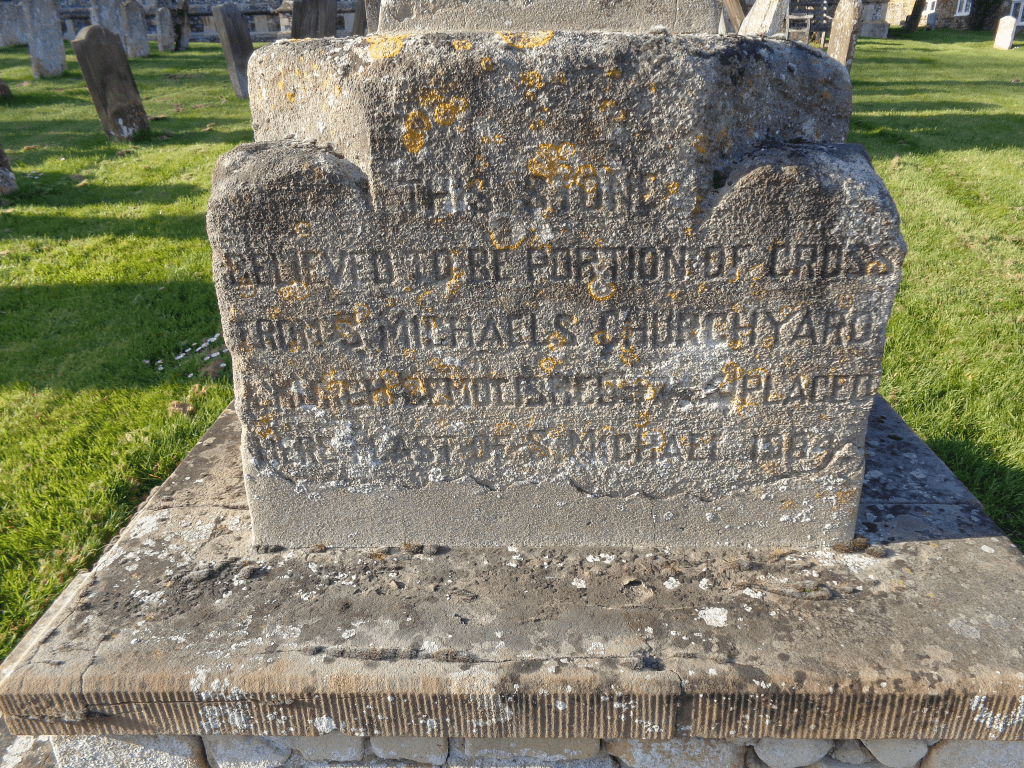 Many villages in the county once possessed a cross situated on a public highway that would act as a focal point in what would often be an extended area where a market could be held. The churchyard of St Martin’s Church retains a fragment of a medieval cross that originates from an uncertain date. The base of the fragment reads: