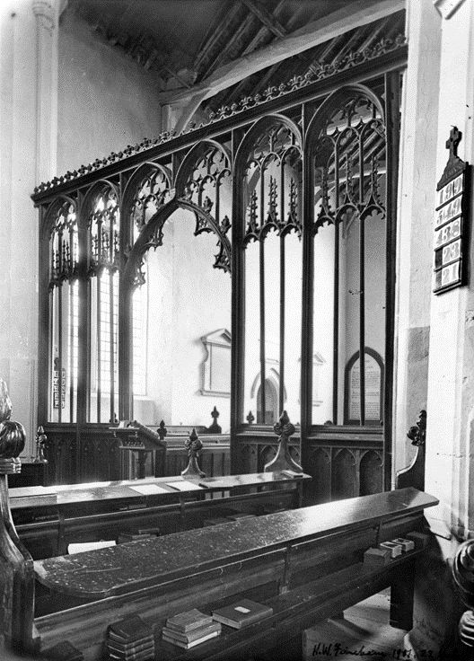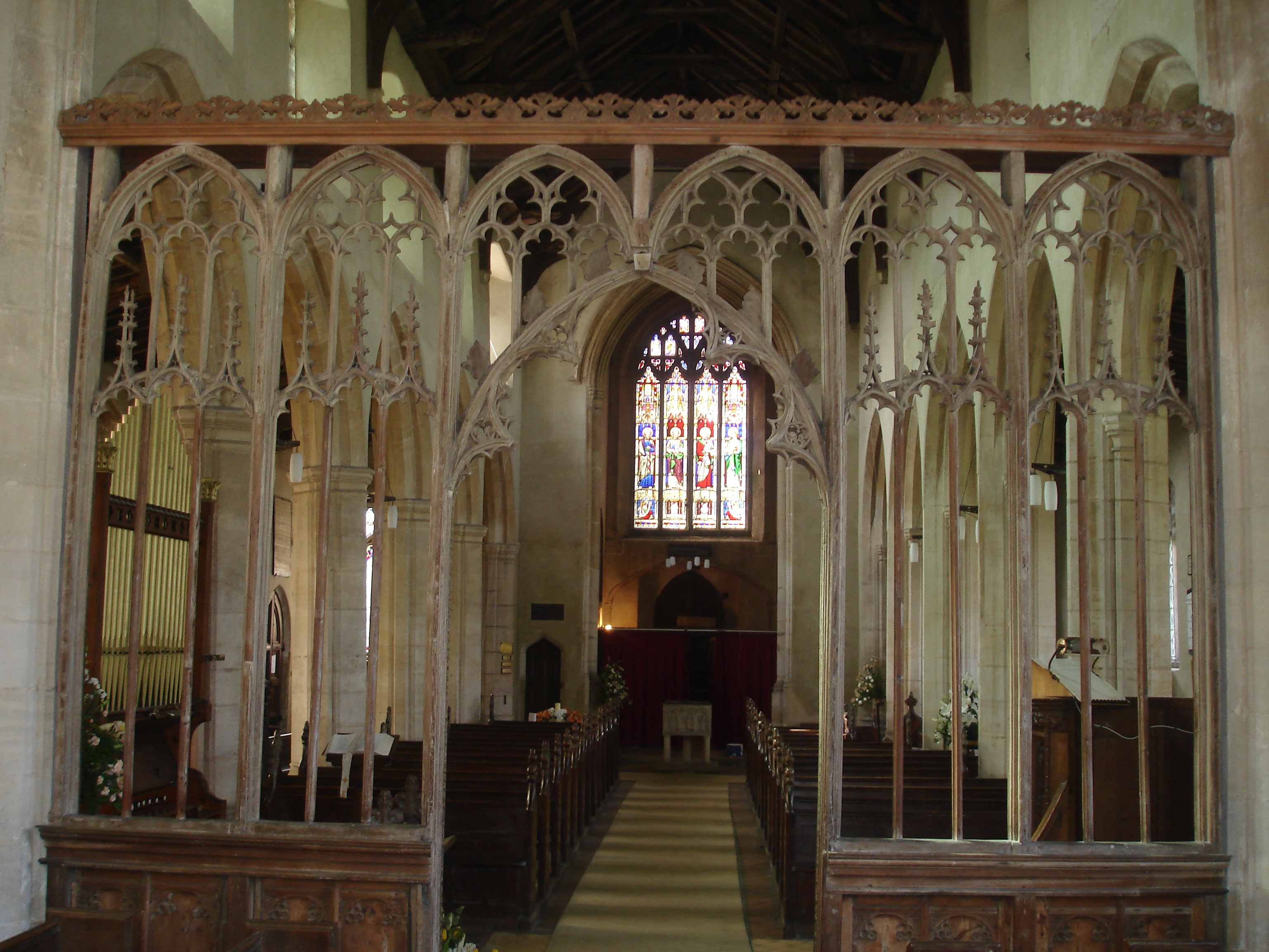 The word rood is derived from the Saxon word rood or rode, meaning “cross”. The rood screen is so called because it was surmounted by the Rood itself, a large figure of the crucified Christ