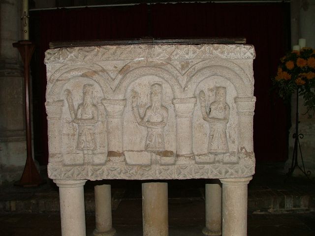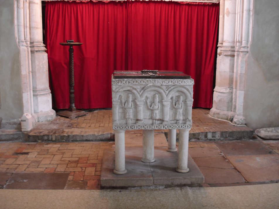 The font is a medieval treasures of the highest order. It has four sides of three compartments which all have figures and scenes taken from the scriptures. It is a Norman font, at least, and may be Saxon as Cotman suggests. This font was moved from St. Michael’s, to St. Martin’s after the former was closed in 1745. It is recorded as being in St Martin’s by the Rev. Charles Parkin, Rector of Oxburgh, who finished Francis Blomefield’s History of Norfolk after the latter’s death. This was by 1765 when the last volume was published.