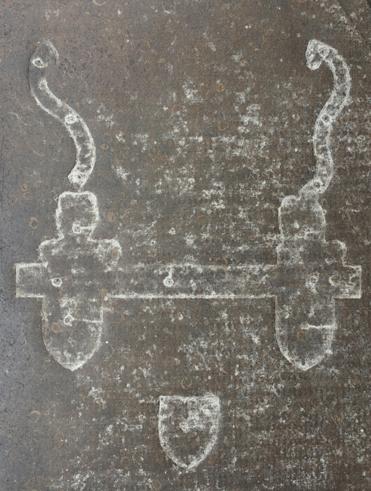 The following three images are ‘indents’ where brasses were originally, but have disappeared hundreds of years ago. In 1631 a writer called Weever, who recorded brasses in churches, says they had long been ‘rieved’ i.e. stolen.