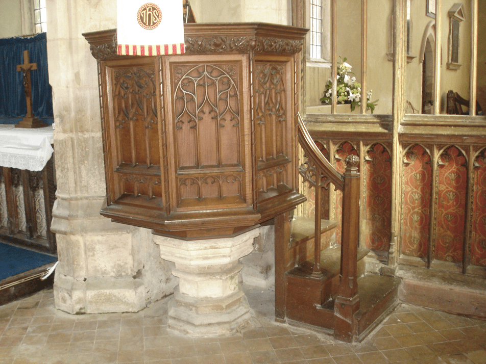 Rev Blyth had a new pulpit in 1847. It was on the other side of the nave as shown in the early 20th century photo. This is most likely to be the 1847 pulpit moved during the 1911 restoration.