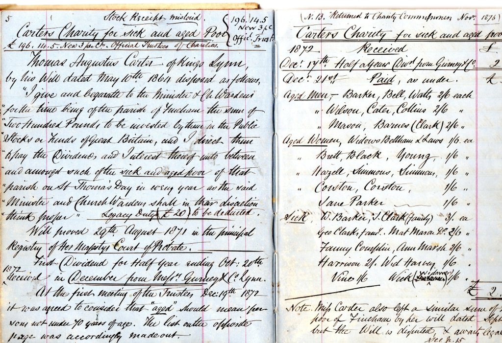 This page tells how the Carter charity was started. It was for the ‘sick and aged poor’ so includes men and women, not just ‘widowers’, and the ‘sick’.