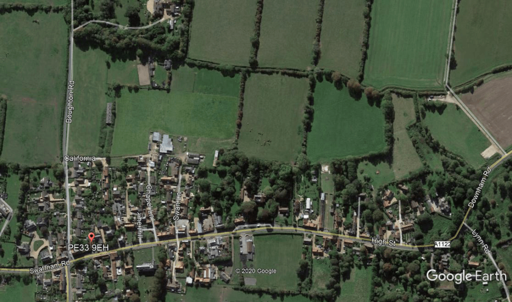 The map gives a snapshot of the area south of the village before the enclosures of the 18th century transformed the landscape into something like that which is seen today. The fields directly to the south of the village were once traversed by three tracks that have now vanished beneath the plough. The tracks gave access from the medieval patchwork of strip farms in the south east to the areas of common land in the south west. The last vestiges of these forgotten highways can still be found at the Fincham Nature Reserve where the truncated remains of the drove road to Downham Market now act as a magnet for wildlife. Along the top of the map shown can be seen South Lane a route that runs east / west to the south of the village. The lane survives as a public footpath today.