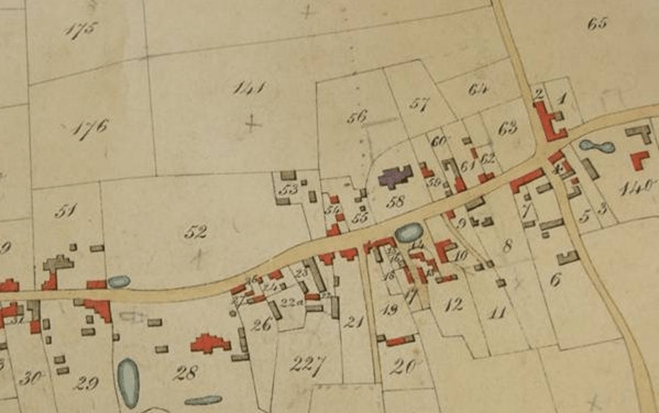 The Tithe Redemption map of 1839 shows the buildings, many of which still exist today. There are 69 occupied structures within the whole parish and when the census return of 1841 is examined then there is a strong indication of the sort of overcrowded conditions that must have existed for many in the village at this time. Furthermore, many of the cottages that are shown on the map were smaller than the structures we see today.