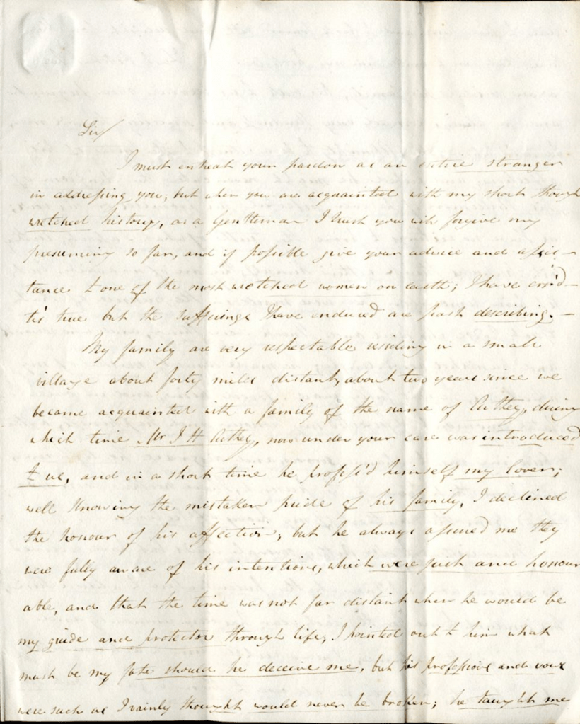 As to the physical nature of the documents, this can also suggest things about the individuals who wrote the letters. Maria’s second letter to the Master, for example, is sealed with black sealing wax which was often used by individuals in mourning, in Maria’s case in mourning at the loss of her child and possibly her father. This shows she was probably aware of the social etiquette involved with writing letters and, in addition to her very neat handwriting and good vocabulary, suggests she was probably fairly well educated for the time.