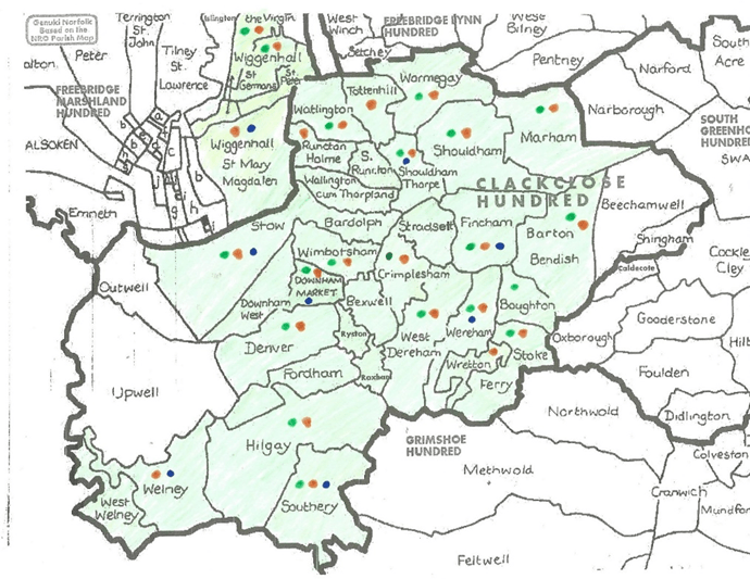 n.b. Beechamwell, Upwell and Outwell were previously part of the Clackclose Hundred but became part of the Downham Poor Law Union after the 1837 reorganisation.