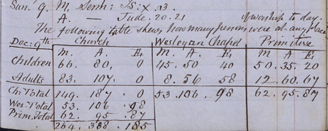 In the response to the 1851 Census of Religion survey James Hopkins William Corston nephew wrote….