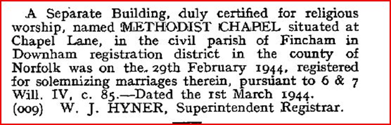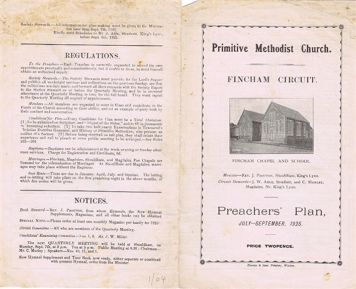 Older dissenter chapels such as Baptist, Quakers and Unitarians could often be found in towns such as Kings Lynn, Swaffham, Downham Market and Wisbech. The newer nonconformist chapels such as the Methodists in the villages. The majority of the village parishes in the Clackclose Hundred had both Wesleyan and Primitive Methodists chapels and Fincham was no exception.