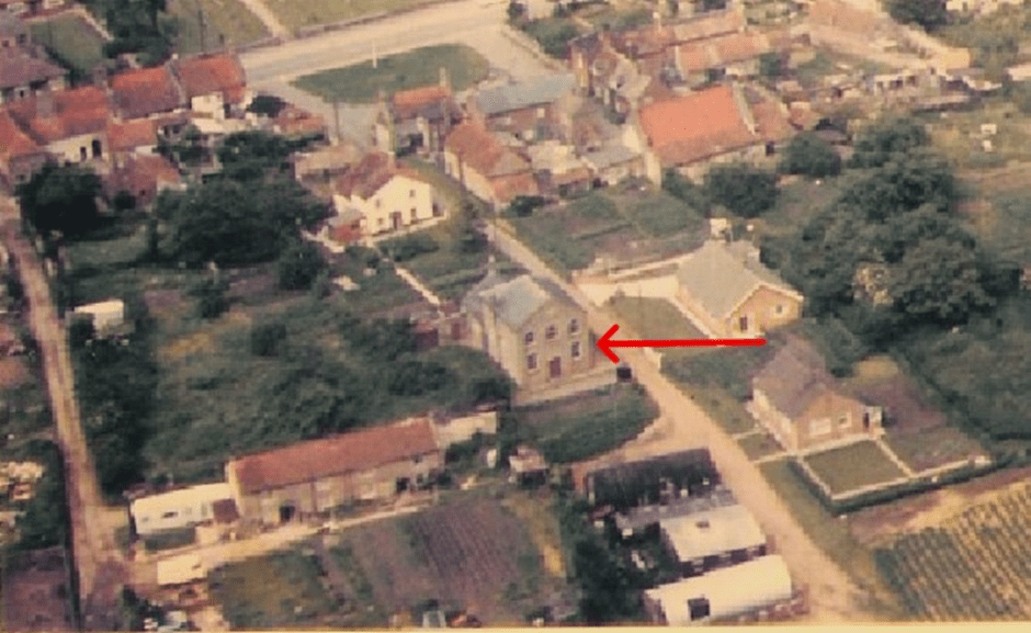 Wesleyan Methodist chapel , Chapel Lane from an aerial photograph