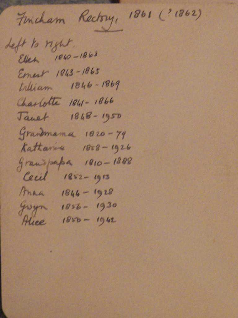 There will be many references to him on this website. The sources are a book he published in 1863 on the history of Fincham, his private diaries kindly shown to us by a descendant, church registers of births marriages and deaths, the school log books, church wardens accounts and miscellaneous items. The photograph above taken in the Rectory garden is the earliest Fincham photograph we know of.