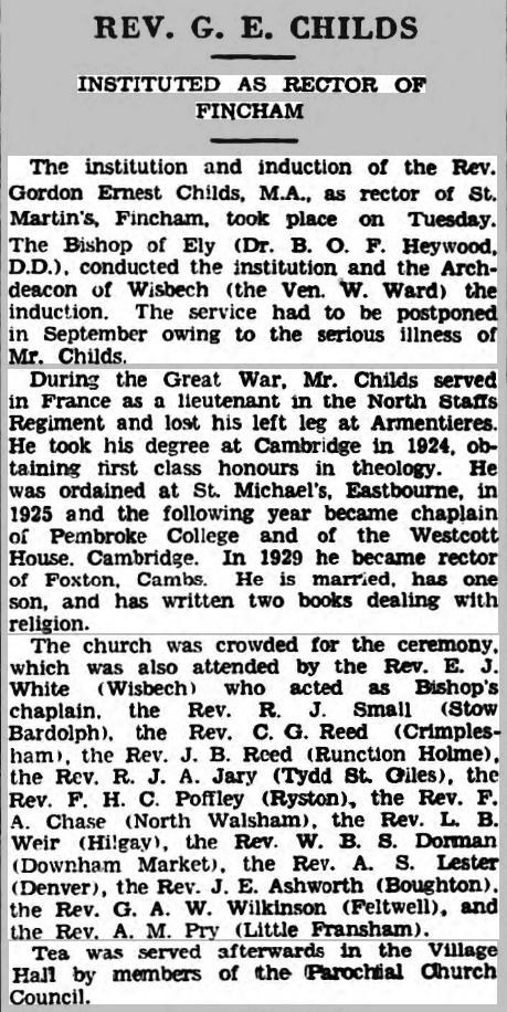 Rev Childs was married to Margery. He died in Cornwall in 1966.
