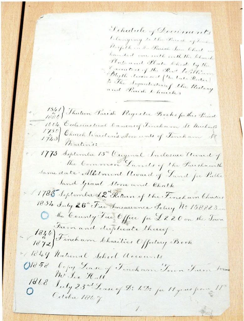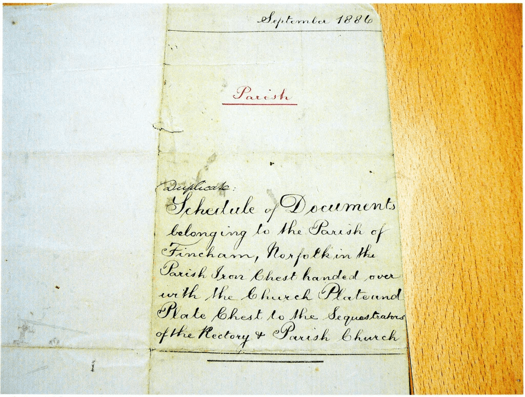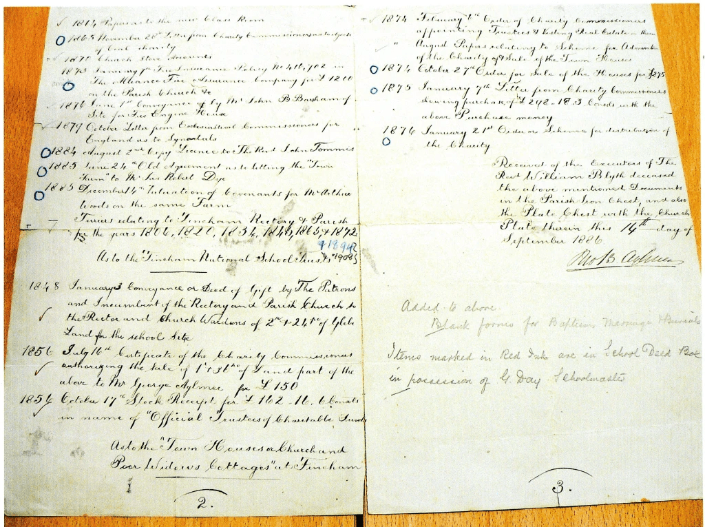 In the methodical way of William here is the confirmation of the handing over of the parish documents and plate in the Parish Iron Chest to his successor. The documents are a treasure trove of information, the most notable being the first item – 1541-1884 Thirteen Parish Register Books for this Parish. The chest referred to is still in the church but the contents referred to are safely elsewhere.
