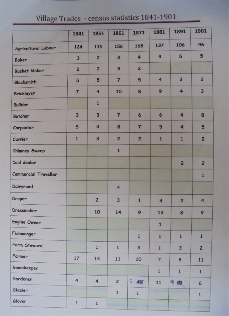 These lists are taken from Census Returns, they indicate the wide variety of trades and professions that populated the village in the 19th Century. Unsurprisingly, the largest group is of course Agricultural Labourers but there were many trades locally available during this period when road travel was slower and more difficult. Clothes were made locally and food did not travel far to be consumed by the people of Fincham.