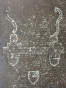 On the floor of the aisle in the chancel of St.Martin’s there are several large black purbeck marble slabs dedicated to members of the Fincham family who were buried in the church. The brasses that were attached to the slabs were removed -one can only assume stolen- centuries ago.