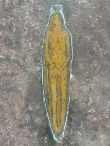 This is the sole surviving brass from the sixteenth century which could be a member of the Fincham family-it is called a lady in a shroud.