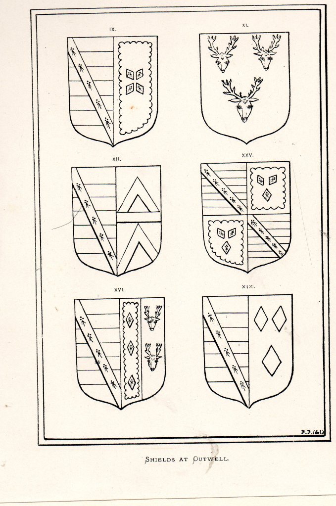 When two families were united through a marriage a joint Coat of Arms could be made. Here some from a ‘Hackney’ collection. Outwell church is mentioned.