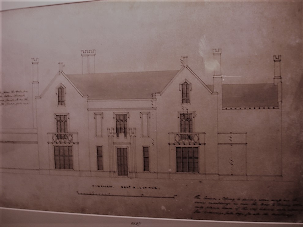This is the design for the new front by the architect William Donthorne drawn in 1827 for Rev Arthur Loftus. The castellated tops to the chimneys were not done although they were typical of several other Norfolk designs of his.